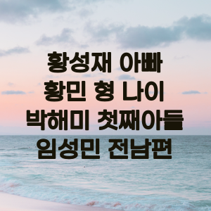 이처럼 황성재의 아버지, 박해미의 첫째 아들, 박해미의 전 남편 황민, 박해미와 황성재의 나이 등 관련된 주요 정보들을 정리해 보았습니다. 이를 통해 이 인물들의 관계와 배경을 보다 잘 이해할 수 있을 것 같습니다.